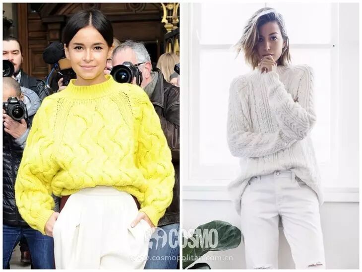 粗棒针毛衣属于看着很暖和,实际也就那样的“偶像派”。虽然保暖效果一般,但拗起造型来还是很厉害的!