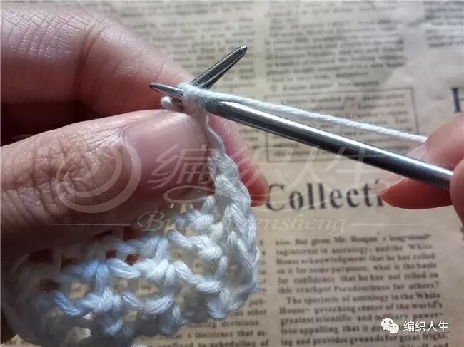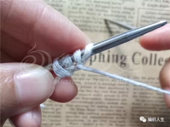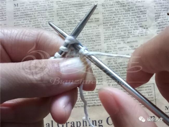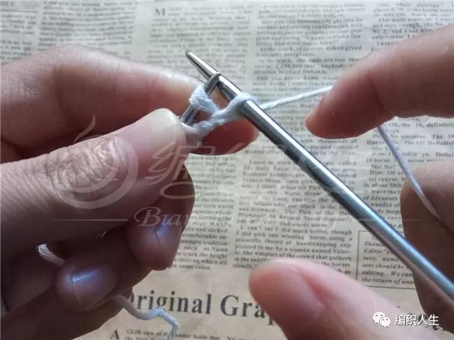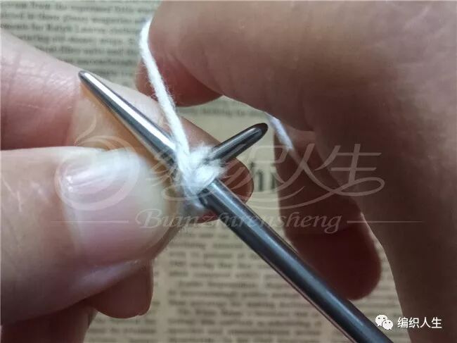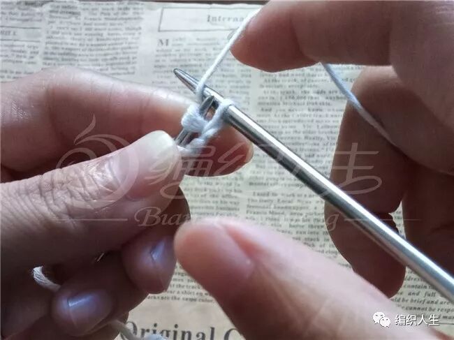起针第2针--上针(从第1针针目中入针,织上针,织好后的线圈套到左针上)
