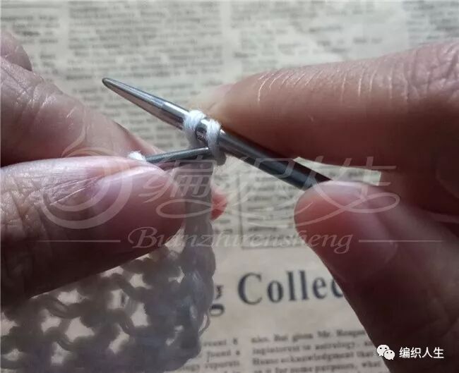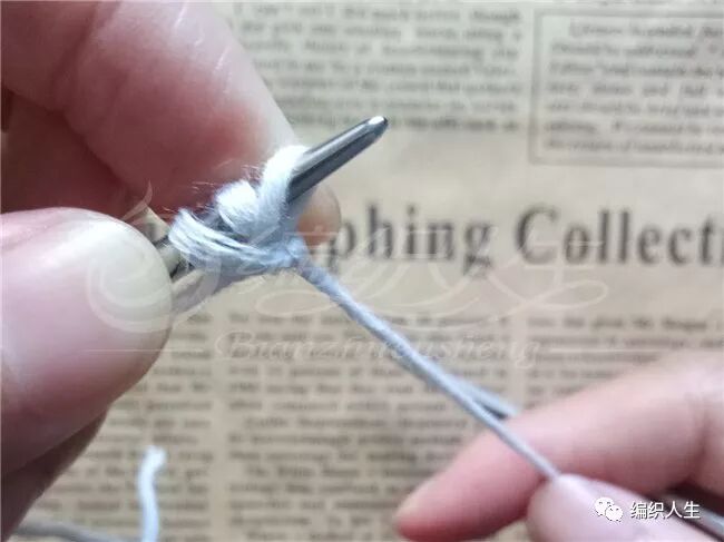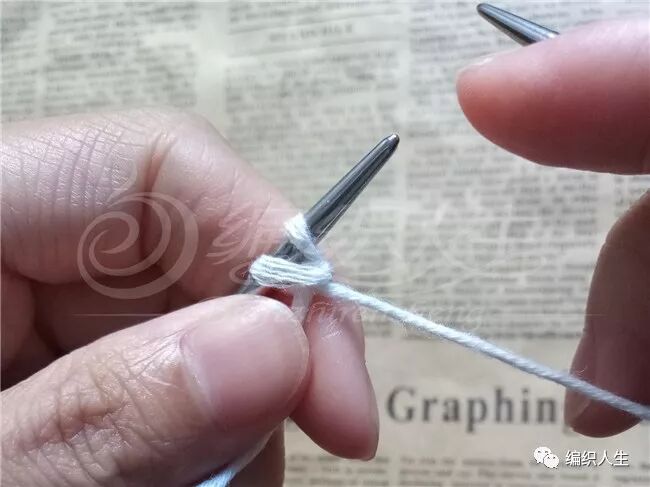 起针第1针--下针(先打一活结,将其挂在左针上,算第1针下针)