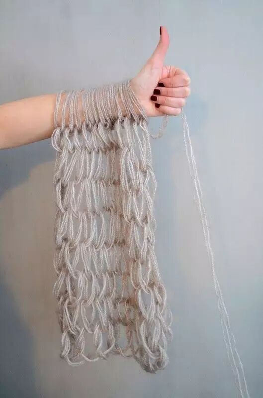 只有毛线没有针怎么办?用手啊!想织出宽松又休闲舒适的效果,用手来编就能达到你想要的效果。特别是较粗的毛线或布条,这样编不到你不服!![]()