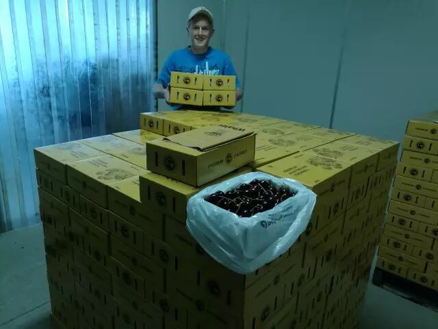 果柄新鲜嫩绿的车厘子进行最后的包装!