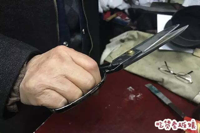 这皮衣不像布一样好剪,肖师傅剪起来要费点力,指关节上厚厚的一层老茧就是这么多年拿剪刀留下的。