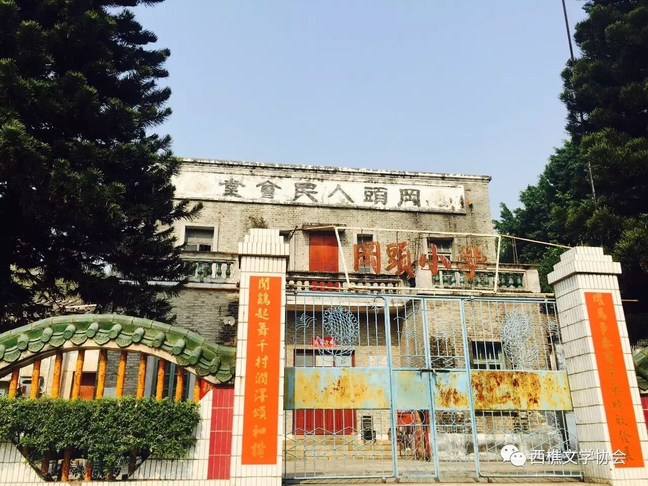 岗头小学,百年传薪。青砖琉瓦,珠华瑰魂。古柏擎天毓锦绣,菡萏潜塘正待春。,正是怀乡地。孭带织成思乡网,大米计划演风情。正襟危坐台前客,犹见百年传梦人。梁士诒墓,九亩墩里,省级文物,最欣完整。拜桌花簇,墓道林荫,巍峨牌坊,肃穆宁静。 叶恭绰书“梁氏佳城”,段淇瑞题“将相联辉”。碑亭当中有碑记,玉兰花下葬英魂。