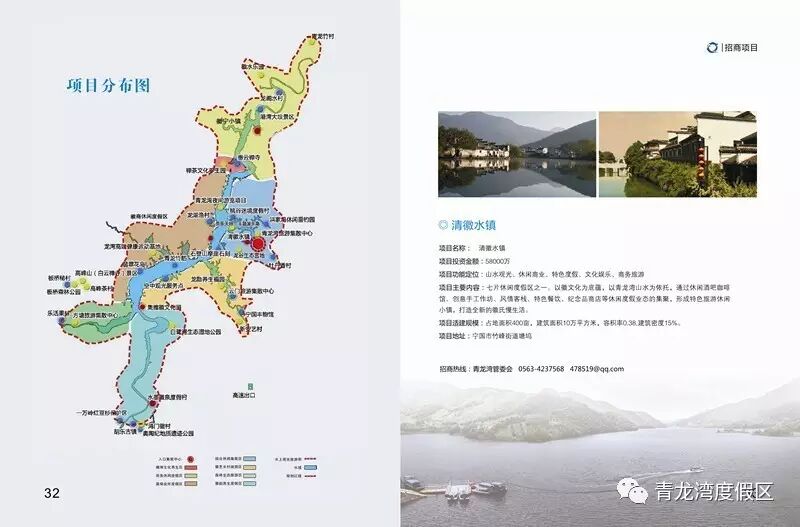 青龙湾度假区:总体定位为综合型养生度假旅游目的地,规划目标是:以可持续保护和利用原生态旅游资源为基础,发展风景观光、生态体验、休闲娱乐、养生度假等特色旅游精品。