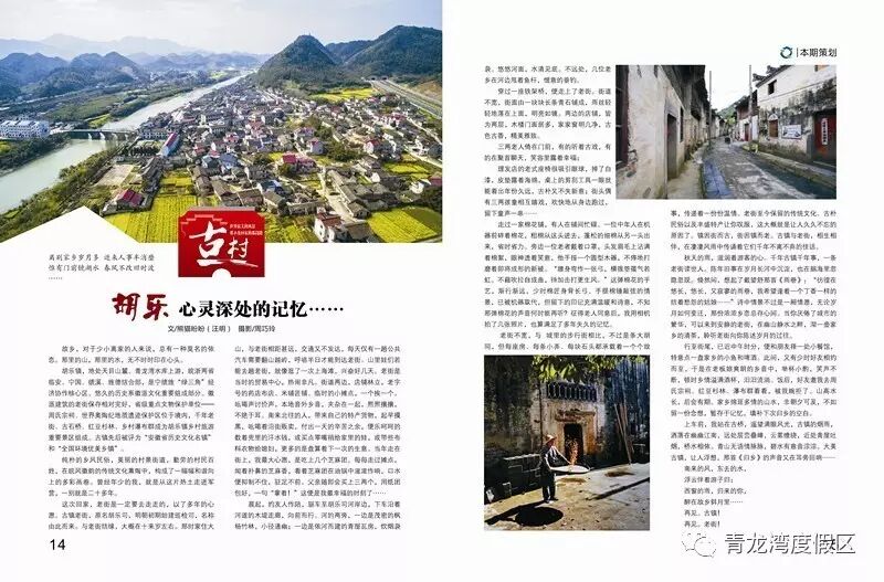 青龙湾 度假区“一级空气一级水” ,不止有青山绿水、百里画廊,更是文化长廊。古村、古桥、古驿道、古祠、古寺、老街,正是这些凝结了物质繁荣,文化交融和情感记忆的山川风物,地理人文、延伸了今天两岸的秀美青龙湾,为蛰居喧嚣的都市人,平添了一抹日渐湮没的旧梦遗痕。