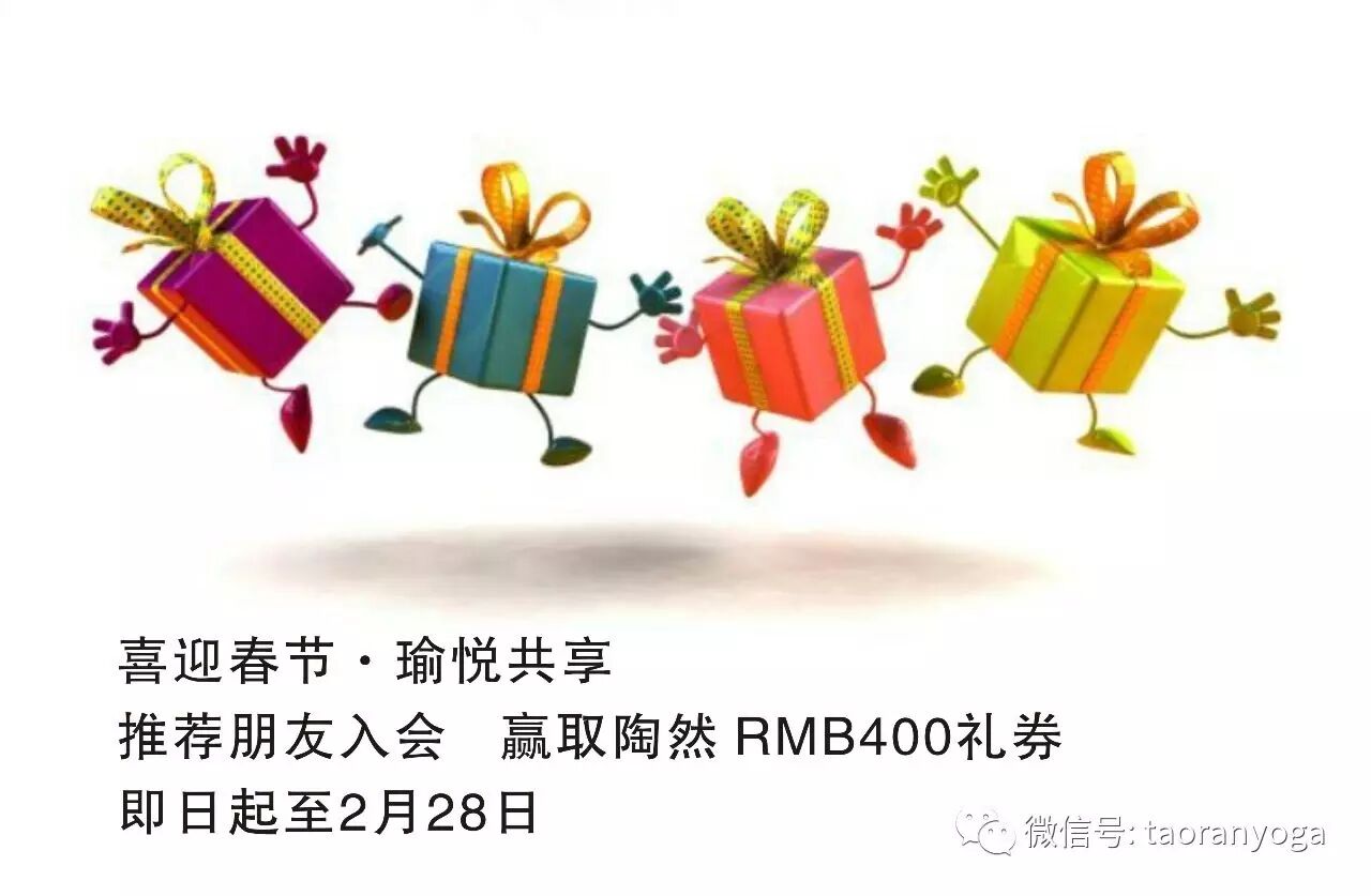 每当您推荐一位朋友入会,您将可以得到价值RMB400元的陶然礼券一张。