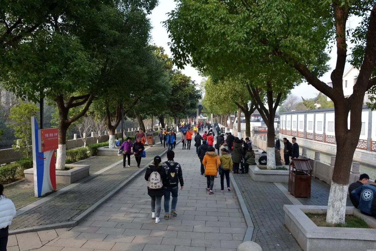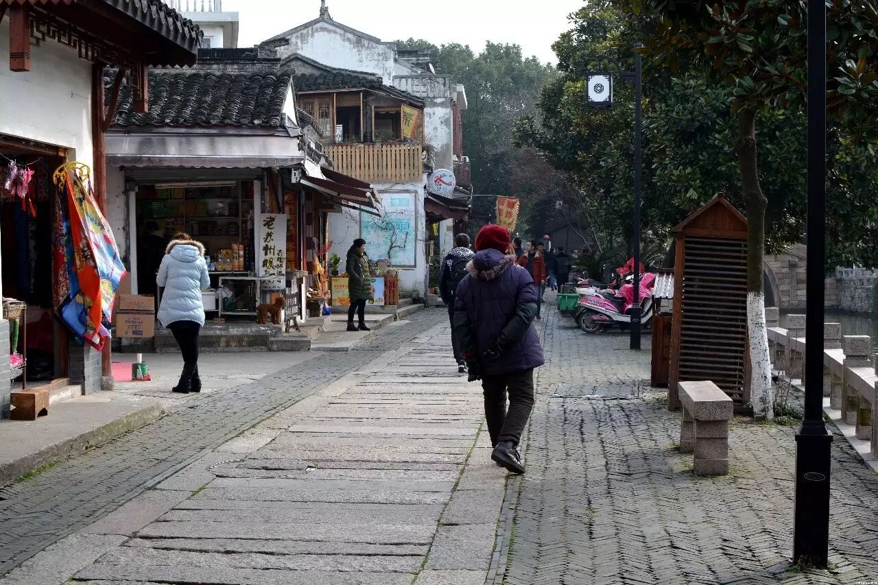 河道两边是青石地板,走在上边非常有味道。