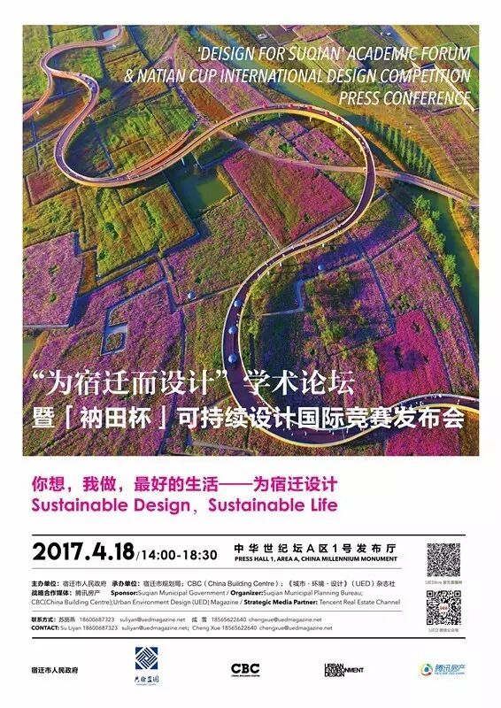 这不仅是一次学术讨论,更是为城市管理者和设计师们搭建的沟通平台,通过多方力量的共同参与,创造更为宜居而富含多样性的生态城市。同时,此次活动还将举办由宿迁市人民政府主办,宿迁市规划局、CBC(China Building Centre)、《城市·环境·设计》(UED)杂志社承办的首届 “衲田杯”可持续设计国际竞赛新闻发布会。