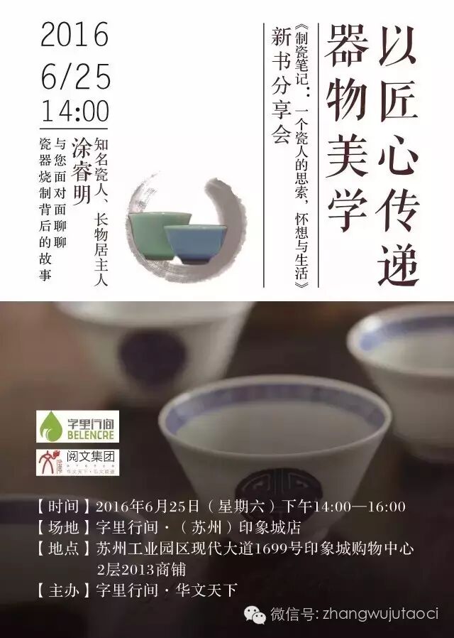 知名瓷人,景德镇长物居主人。1999年毕业于中央财经大学,在海关待了10年,2009年从海关离职投身景德镇手工制瓷。致力于传统陶瓷工艺的传承,陶瓷文化与美学的传播,以当代艺术与设计的介入,将传统融入现代生活,推进景德镇陶瓷文化的现代转化与复兴。
