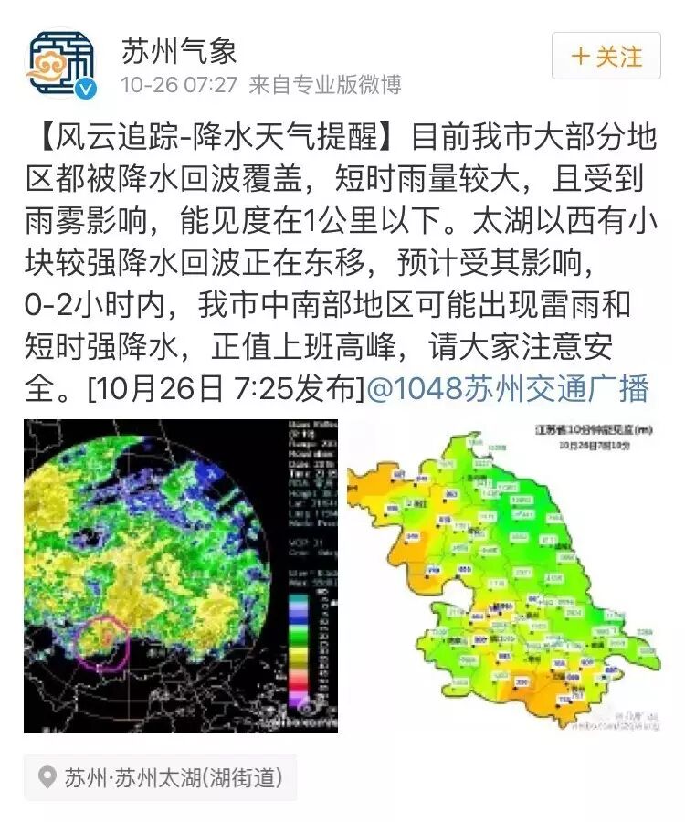 苏州气象台今天上午发布了降雨预告