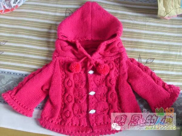 领:横织、起29针,2下、2上,4下(麻花),2上、 9下(麻花),2上,4下(麻花),2上,2下