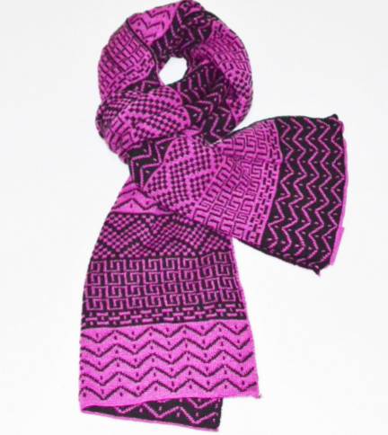 [细密的人字形编织花纹会让围巾褶富有光彩]